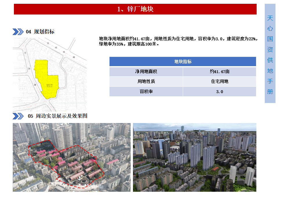鋅廠地塊占地41.47畝,容積率3.0,建筑密度為22%,綠地率35%,建筑限高100米,緊鄰地鐵1號(hào)線侯家塘站,周邊配套成熟,擁有仰天湖小學(xué)(本部)等優(yōu)質(zhì)資源,是打造住宅的理想選擇。